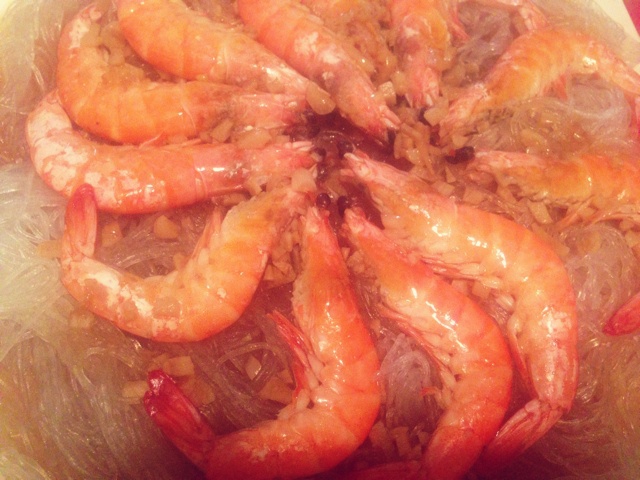 蒜蓉粉丝蒸虾配紫薯饭