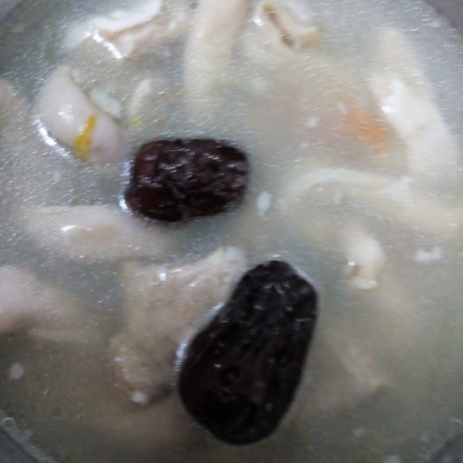 猪肚排骨汤。汤很好喝。加了枸杞和大枣。