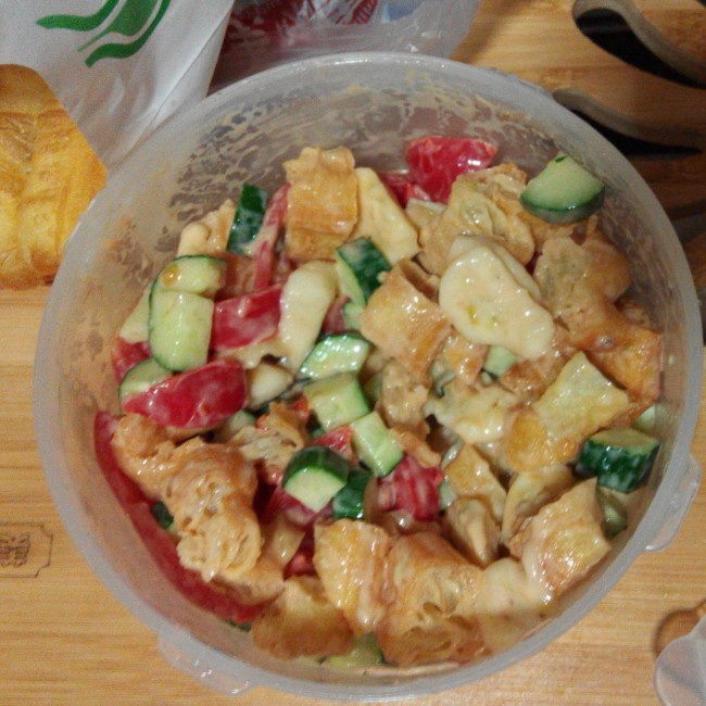为了买根油条走了二十分钟的路程,现在才吃到自己做的沙拉,超赞!!好好吃!!不愧是吃货!!