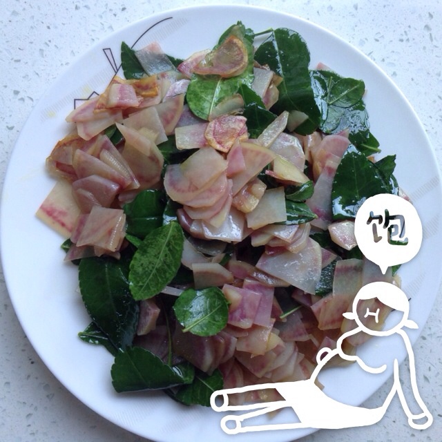 典型的云南菜,花椒叶炒七彩土豆。