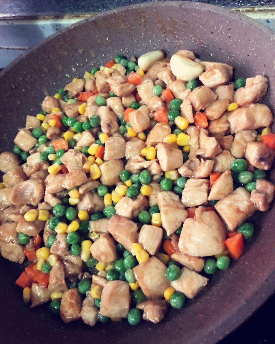 主要食材:胡萝卜、芹菜、少量青豆米。简单好吃色香味美!