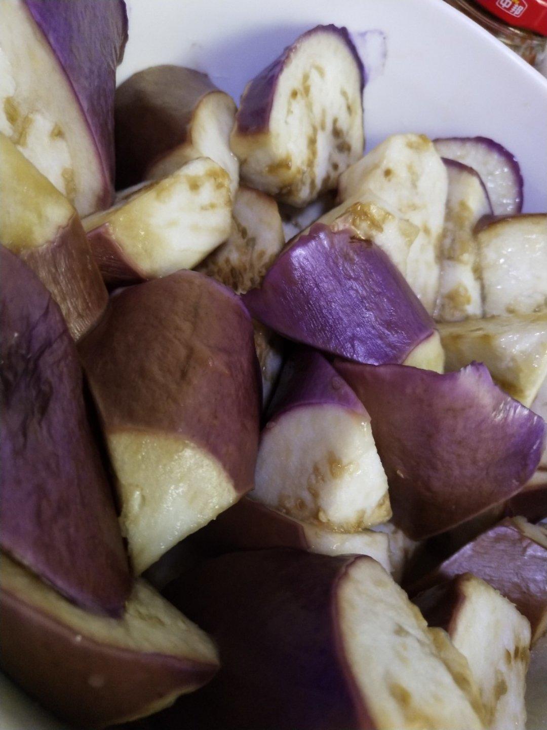 茄子切好加少量醋和淀粉蒸15分钟。将蒜末辣椒姜末炒好加蚝油白糖盐味精炒下再加入蒸好的茄子,炒到茄子包裹所有酱料就好了。放...