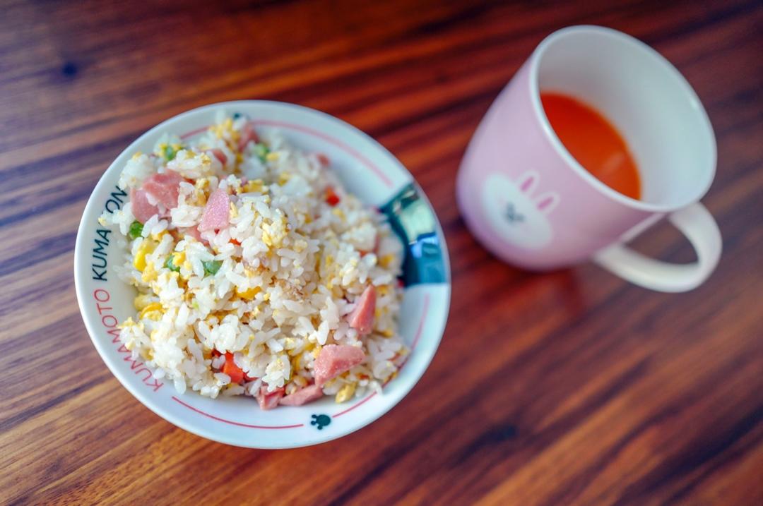 早饭:五色蛋炒饭+一杯果蔬汁