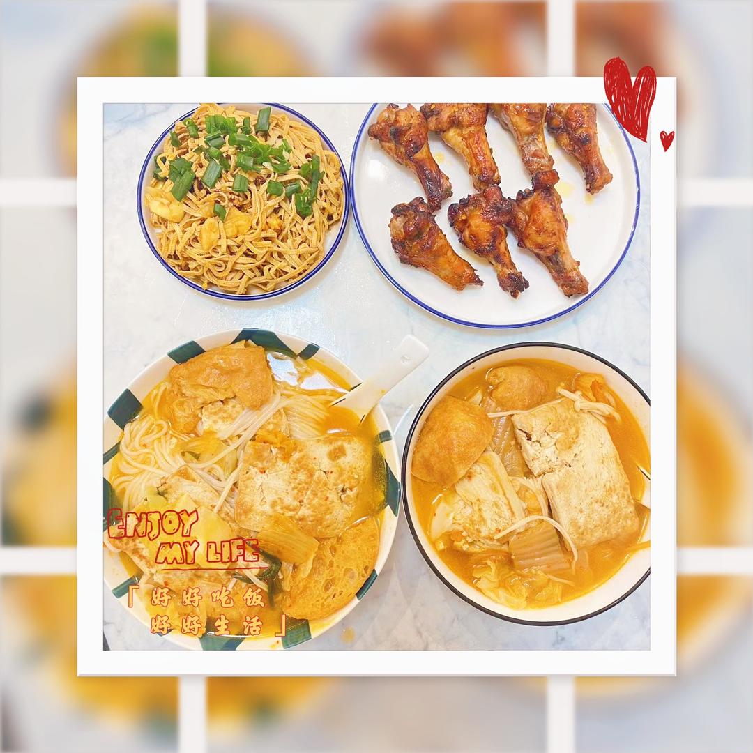 ▶️ 烤鸡翅:改花刀入味,清净园韩国烤肉酱一勺,辣酱粉一小包,适量蚝油,适量酱油,孜然粉,空气炸锅180℃,20分钟,1...