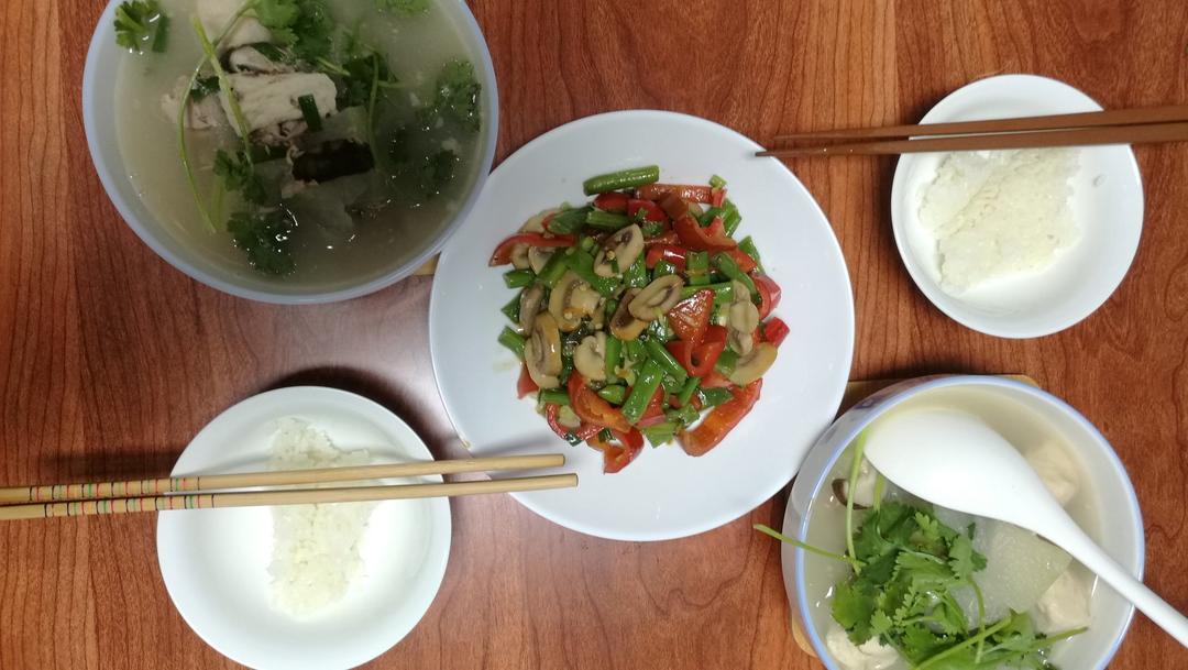 昨儿两人食晚餐,红烧鸡腿,芝麻油香菇小松菜,烧麦和大米饭。偷偷告诉你哦,我们在饭前还吃了糖炒栗子,大米饭 + 烧麦里的小...