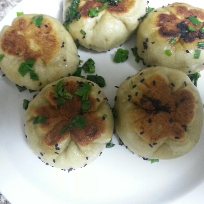 第一次做生煎包 很有成就感 嘻嘻 用的是素馅 韭菜 腐竹 木耳