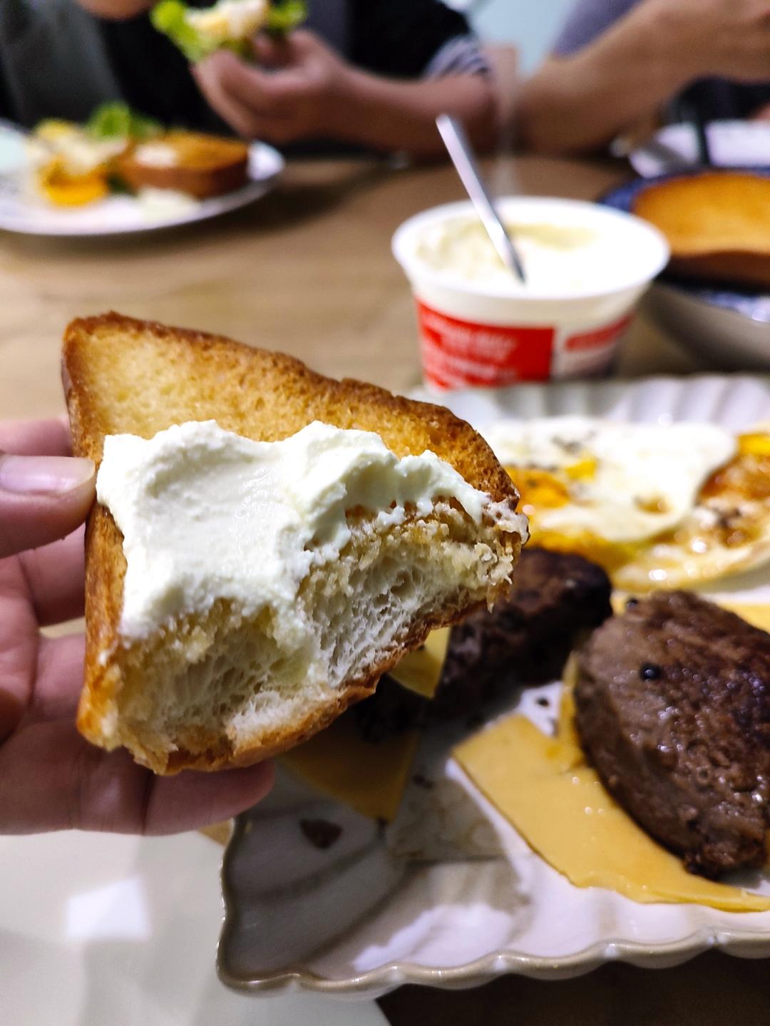 煎过的面包配上酸奶油太美味了