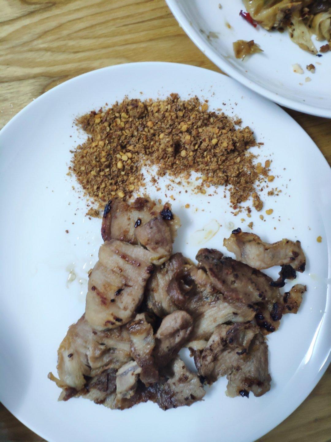 尝试了下不腌肉直接煎,蘸上四川干碟,也不错。