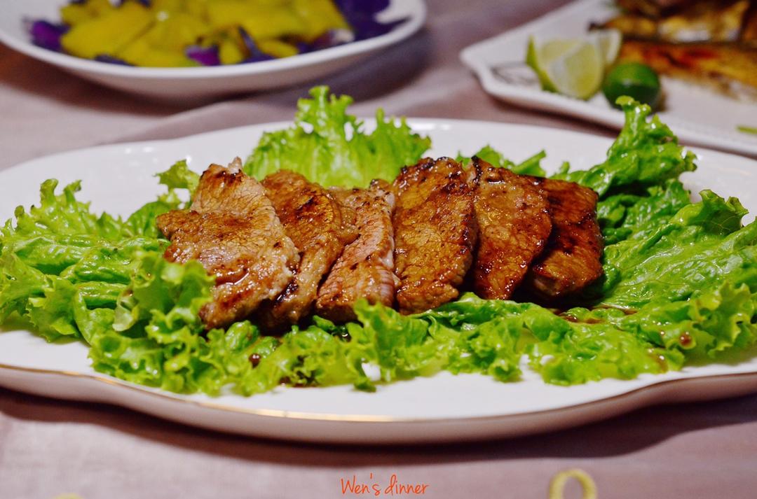 #香煎梅花肉...