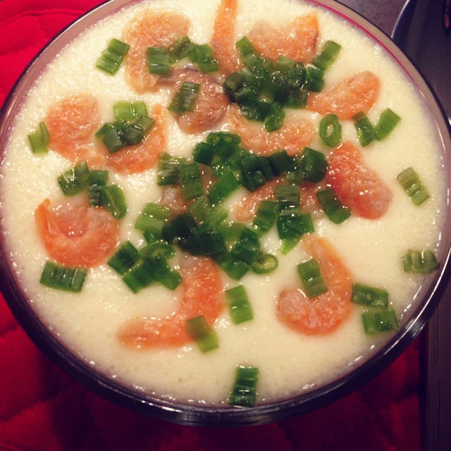 算是晚餐的宵夜,不爱吃酱油所以蒸好就没加,一直有种执念,鸡蛋羹里加了虾米才算完美