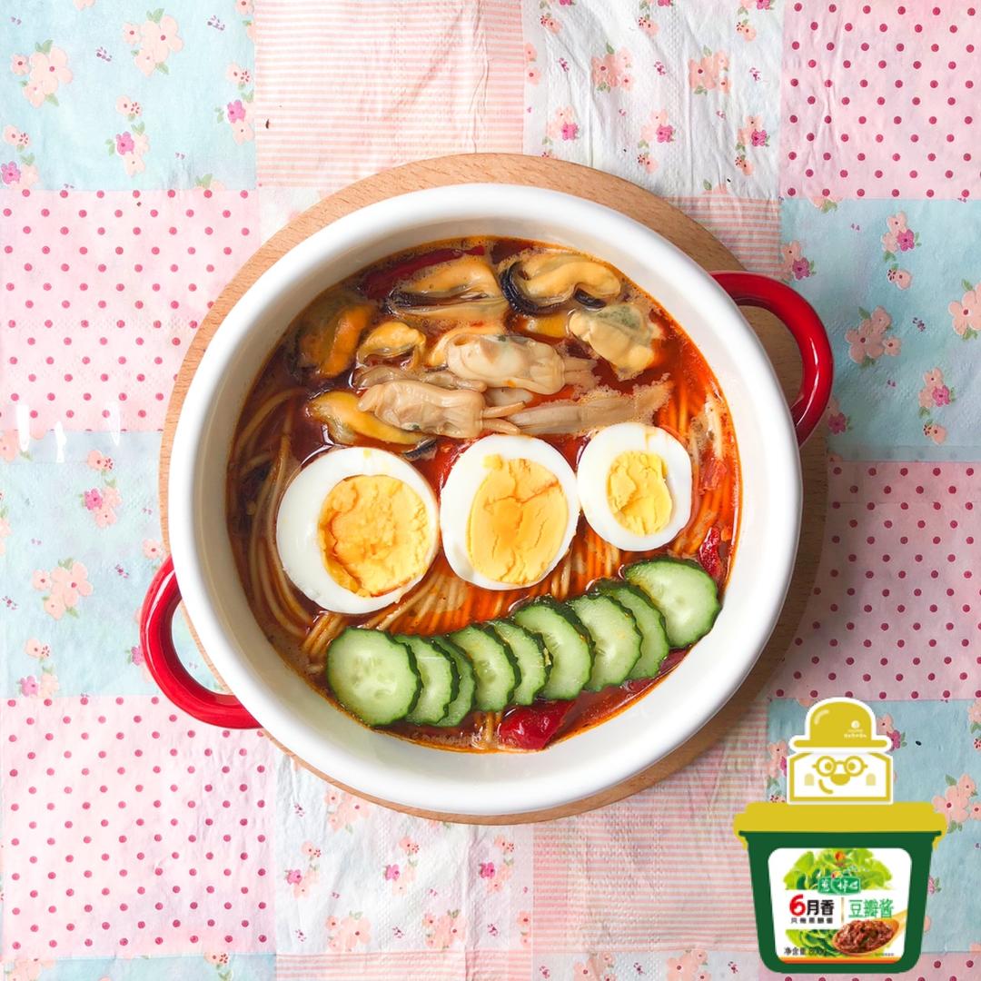 加了豆瓣酱的海鲜面更加咸鲜美味