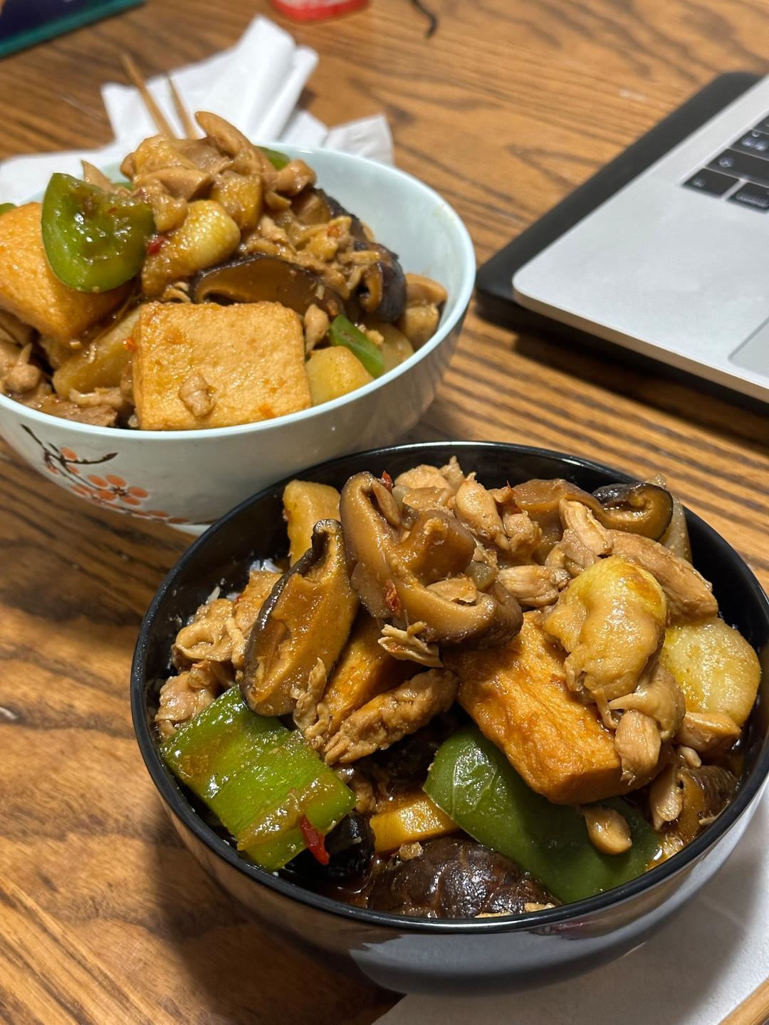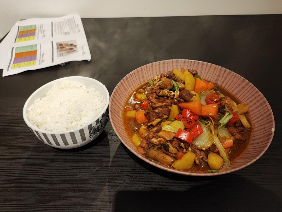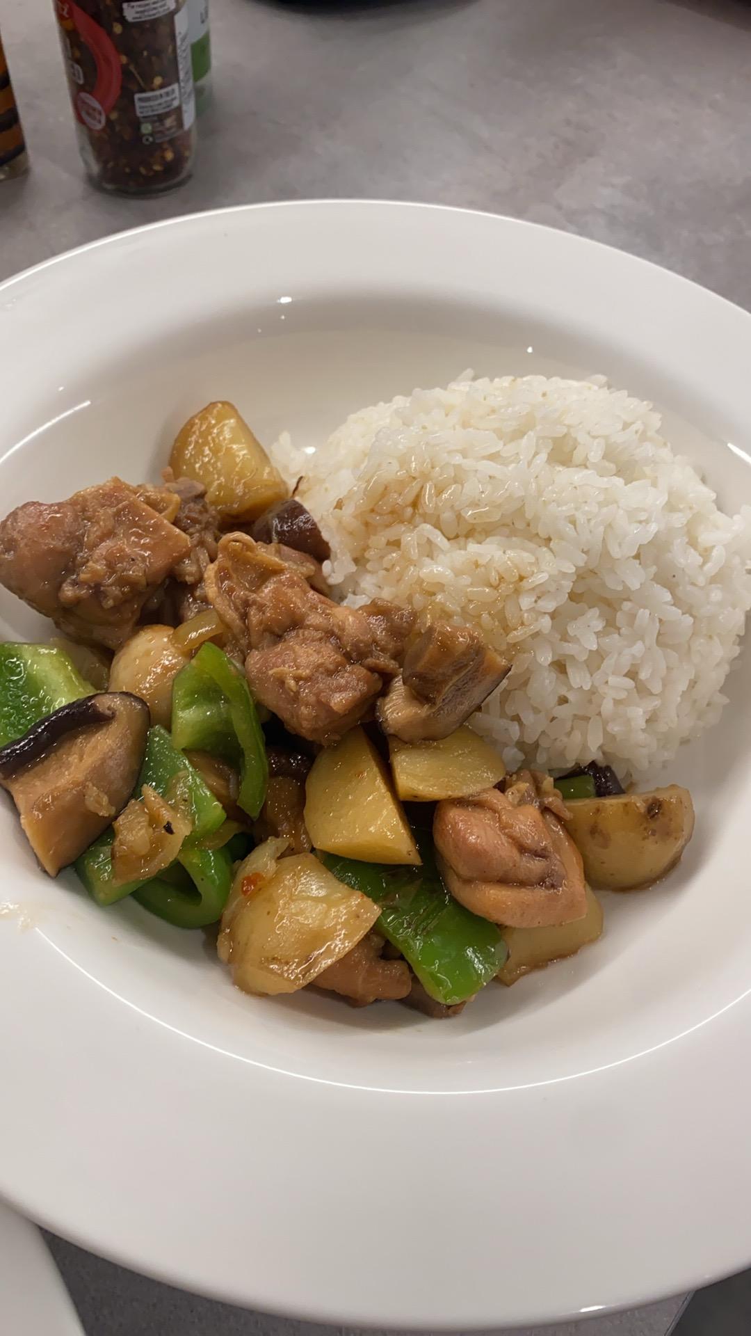 第二次直接拿鸡腿肉做的,缩短了肉的炖煮时间,没加香菇,味道比第一次要好很多,太下饭啦!再次感谢作者!