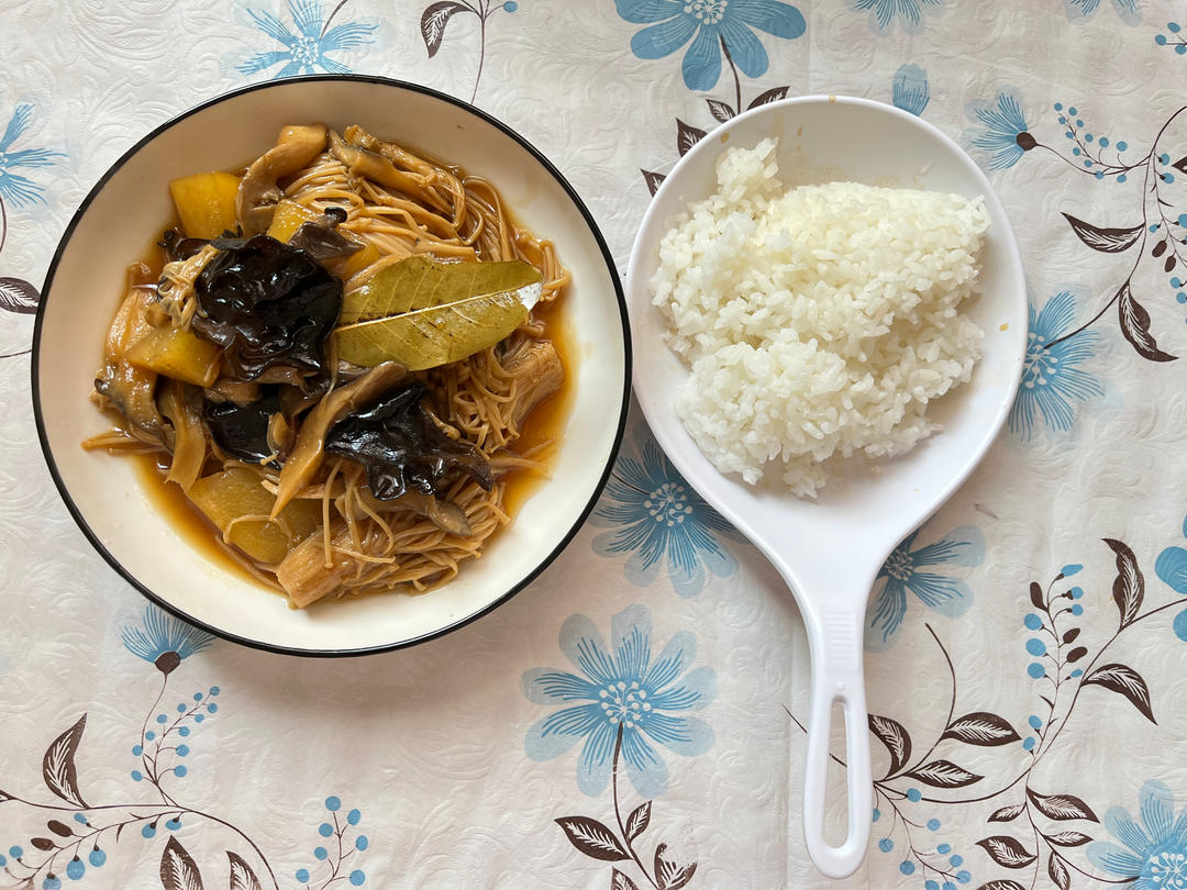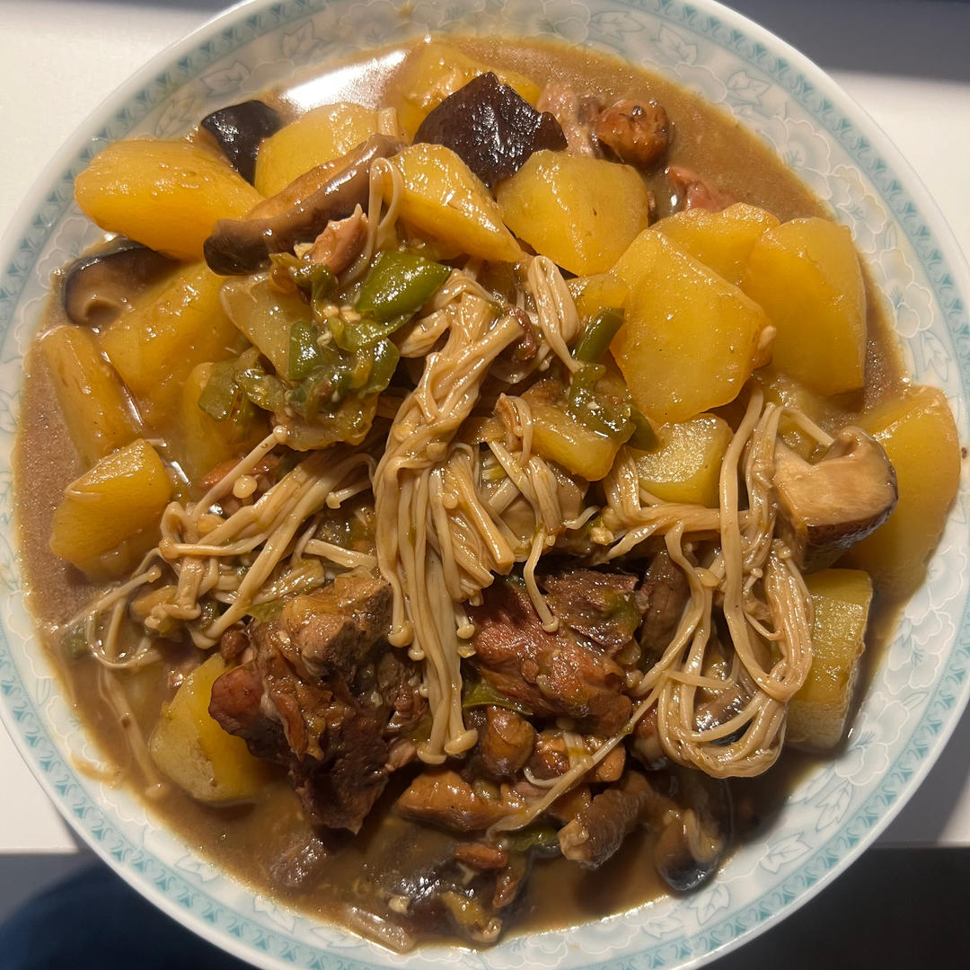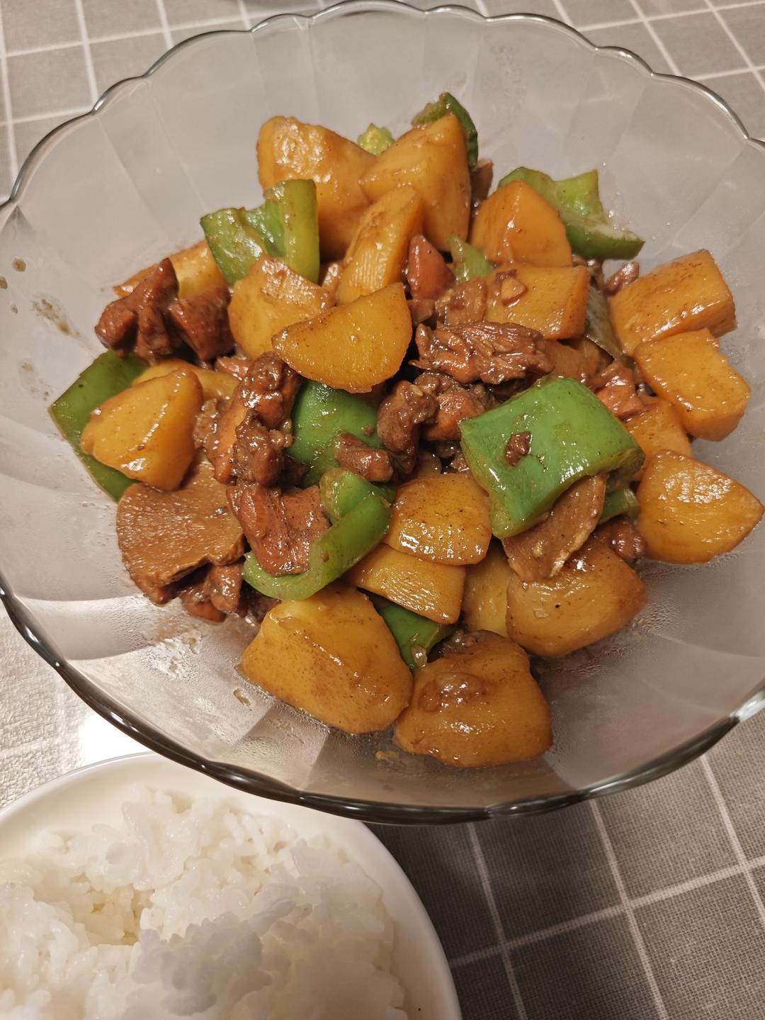 第二次直接拿鸡腿肉做的,缩短了肉的炖煮时间,没加香菇,味道比第一次要好很多,太下饭啦!再次感谢作者!