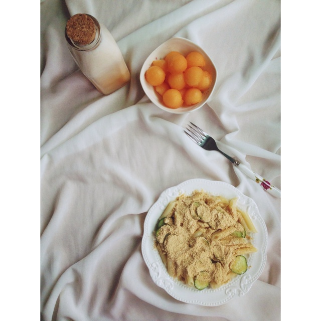 通心面沙拉+哈密瓜牛奶