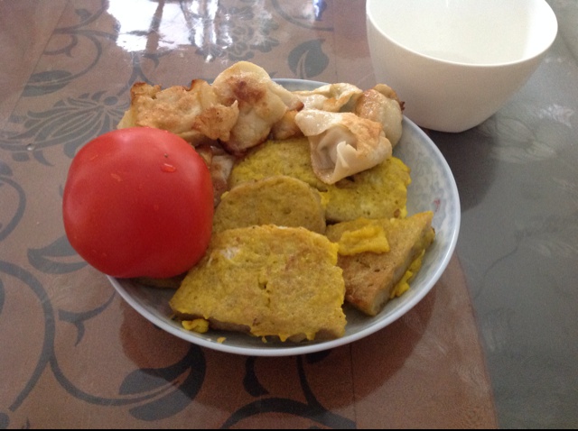 早上好呀,鸡蛋煎饺和鱼丸