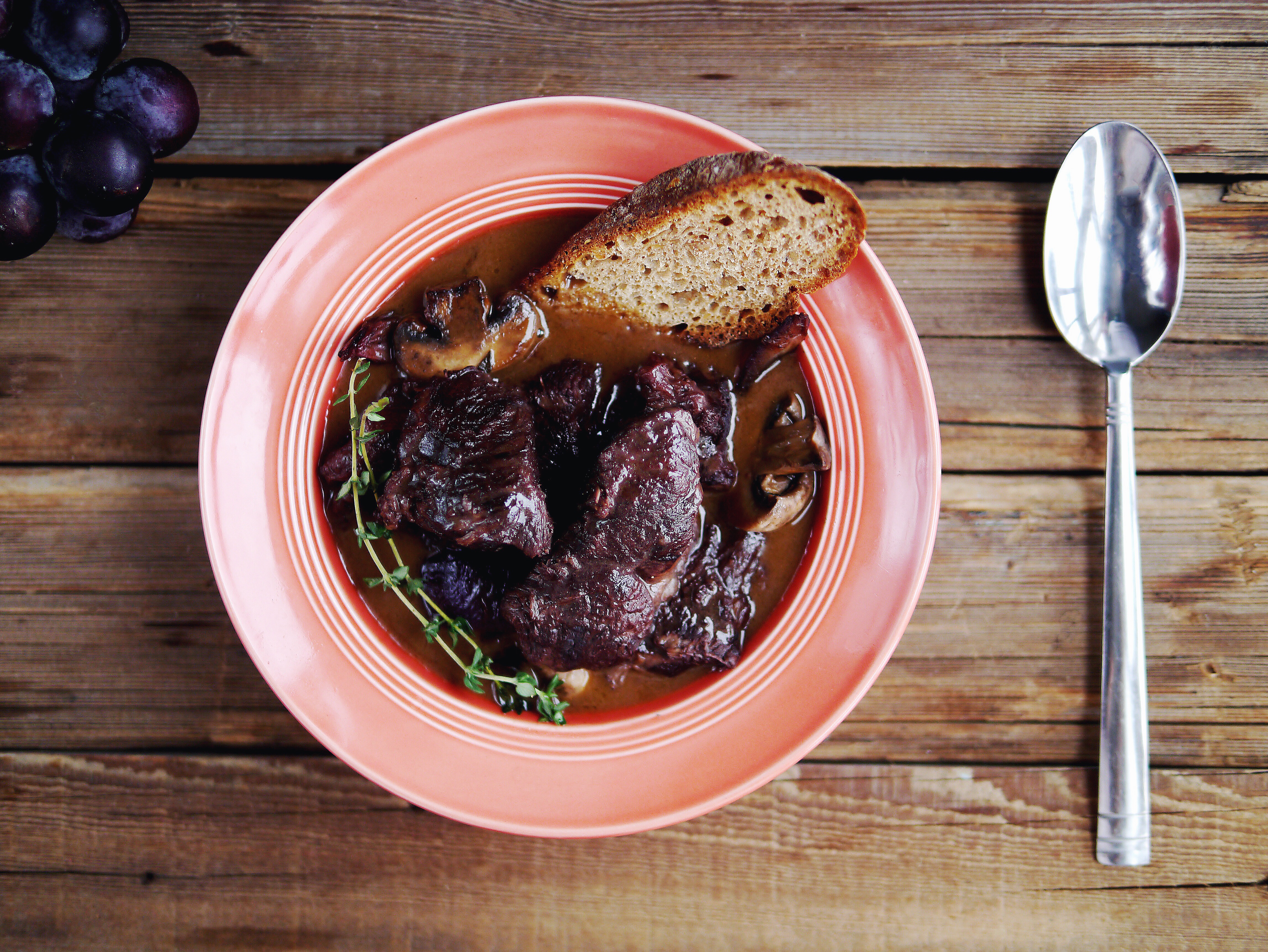 用蓝带的方子做的,澳牛跟整瓶红酒、香草束、蔬菜们一起浸了24h,还没煮就已经相亲相爱香气逼人。算算从准备到最后做好历时也...