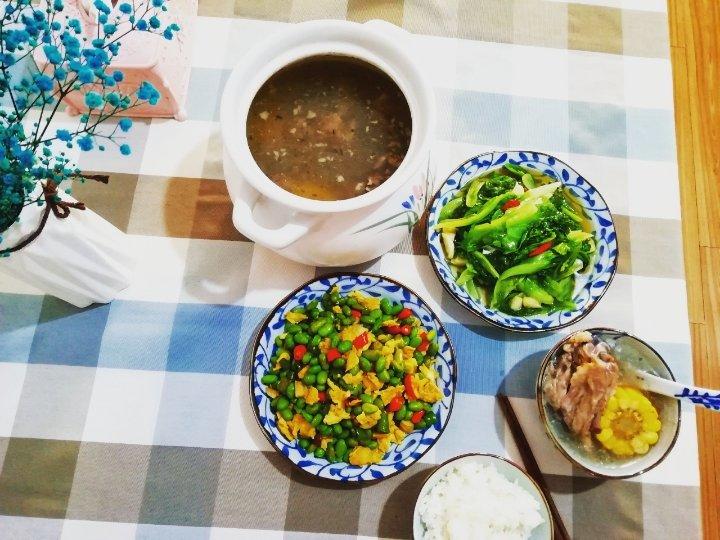 骨头汤 毛豆炒鸡蛋 生菜