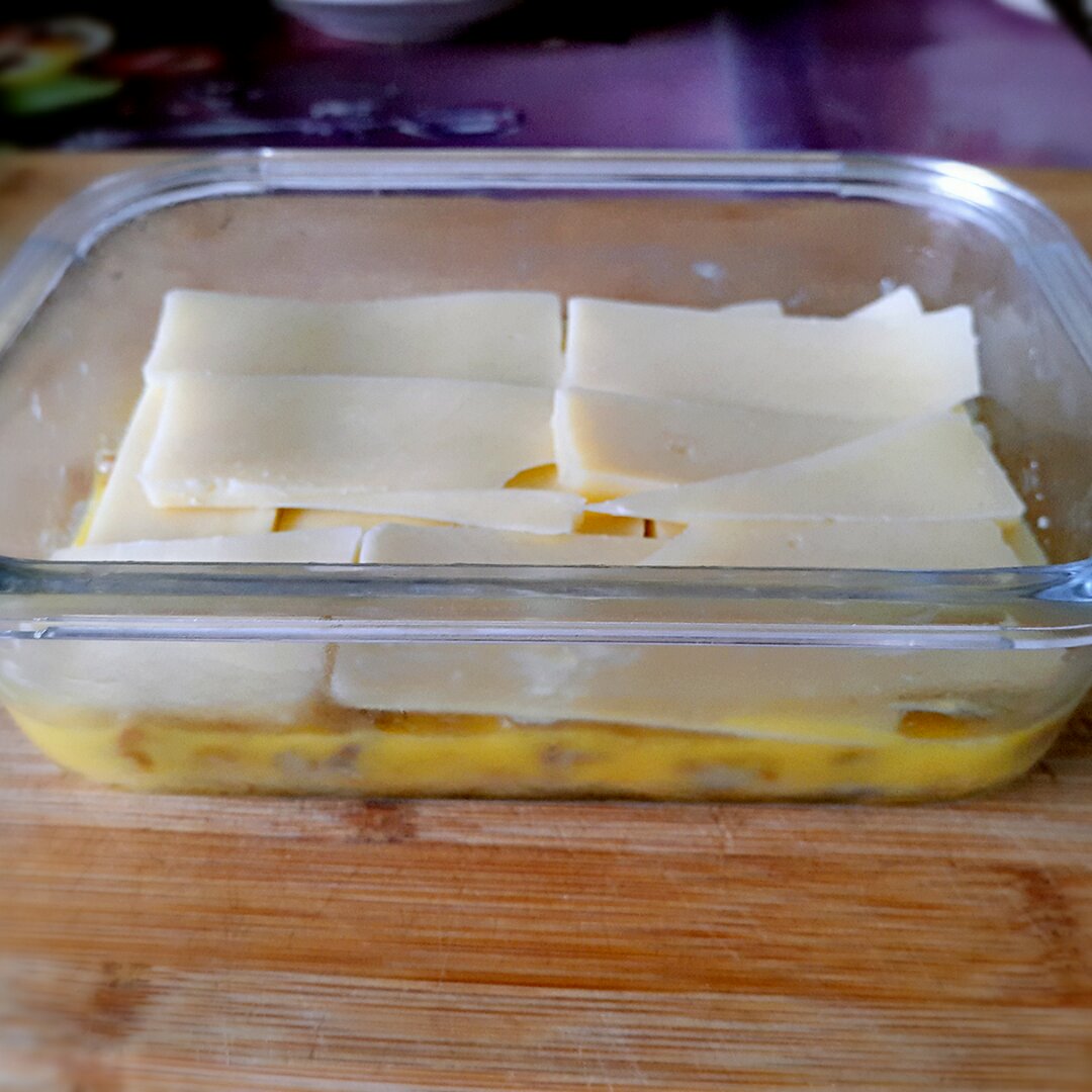 芝士焗鸡蛋肉末。入烤箱前~