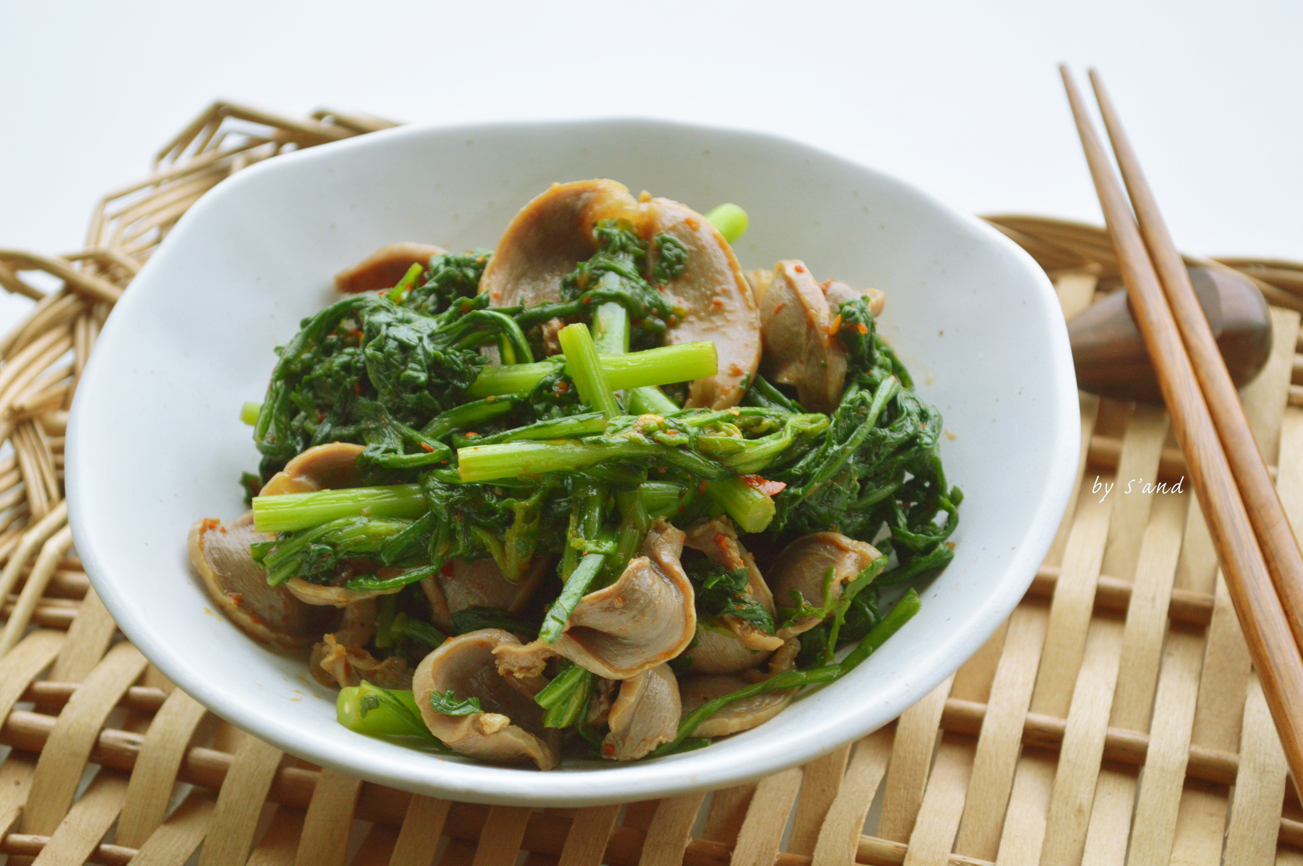 茼蒿拌鸡胗。