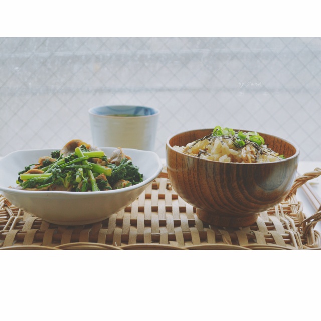 饭菜加味噌汤,标准日式餐桌。今天下雨,赖在床上不想起错过了早餐,那就好好吃顿午餐吧。家里的米终于吃完了!!来日本两年我就...