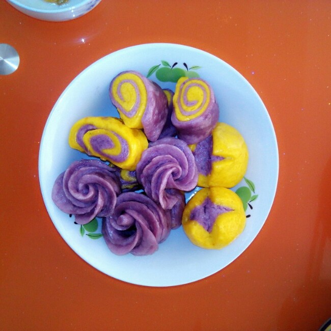 南瓜紫薯馒头,营养好吃。