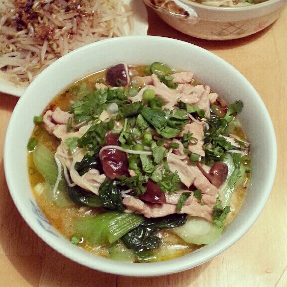 在亚超买了袋装味千拉面的猪骨汤面,做好之后挖一勺芝麻酱拌着吃,香香的各种满足~~