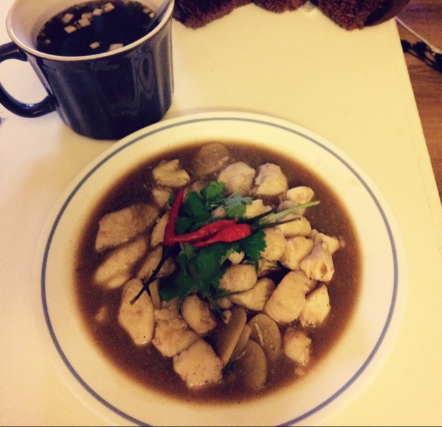 鱼的鲜味不够重,可能料酒放多了吧~配上味噌汤的晚餐总体来说还是不错的~