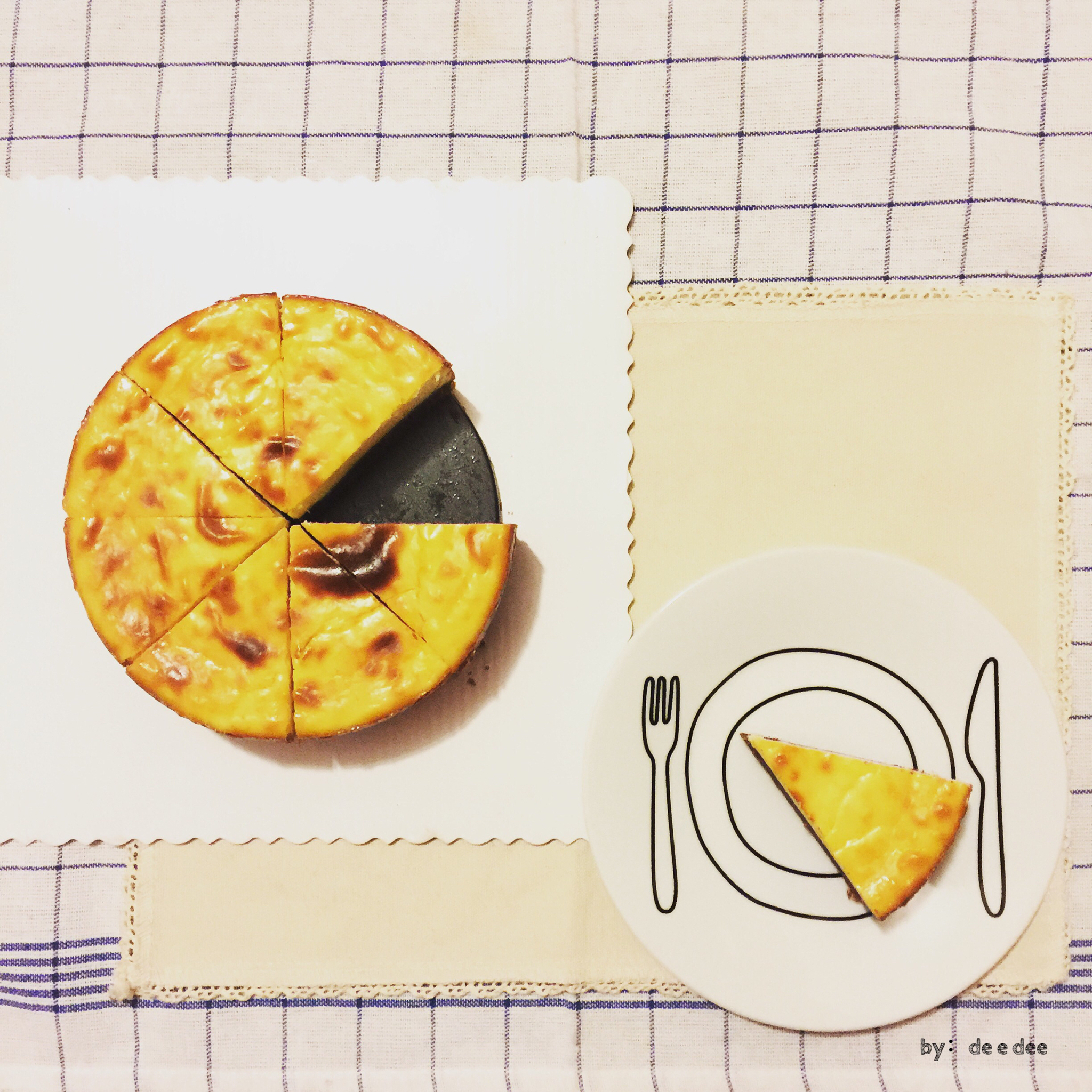 用的六寸方模。。所以就矮了一点,上层是酸酸的奶酪味
