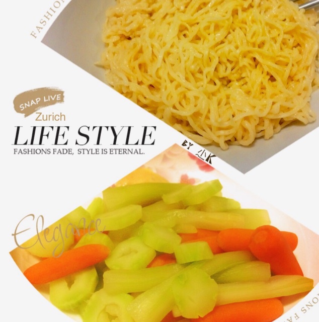 宵夜「芝士捞面+蔬菜沙拉」