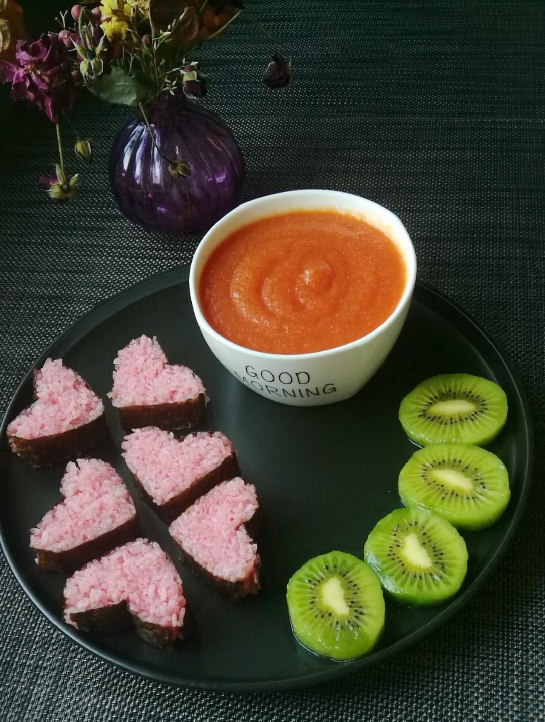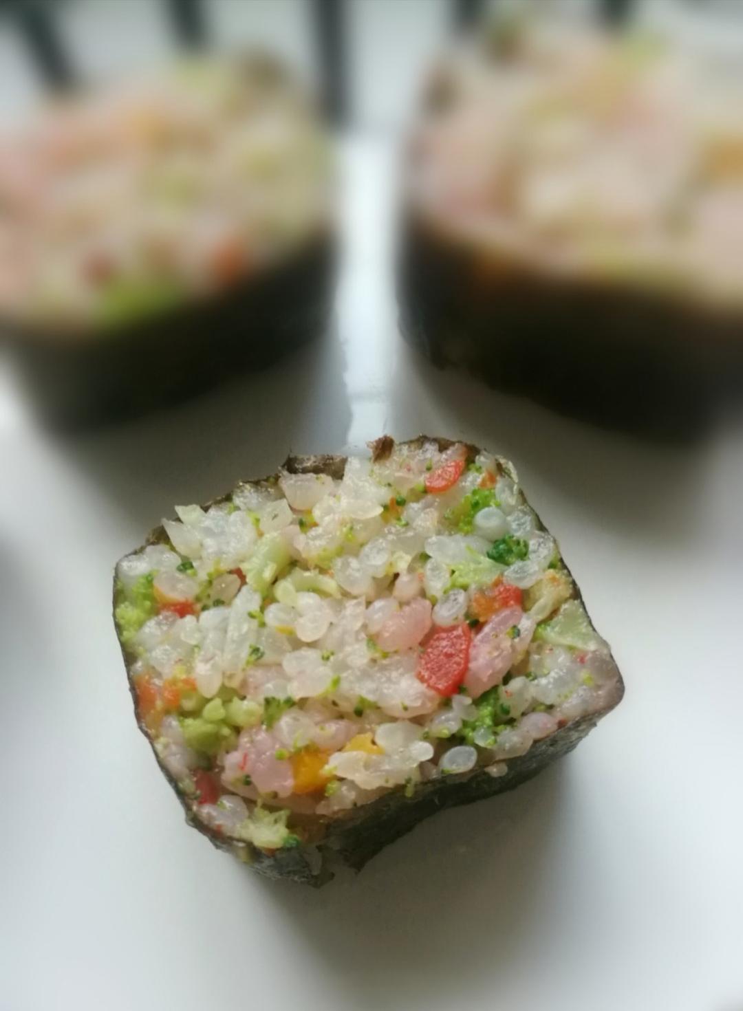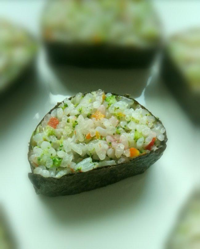 饭团里加了西兰花和胡萝卜。😊