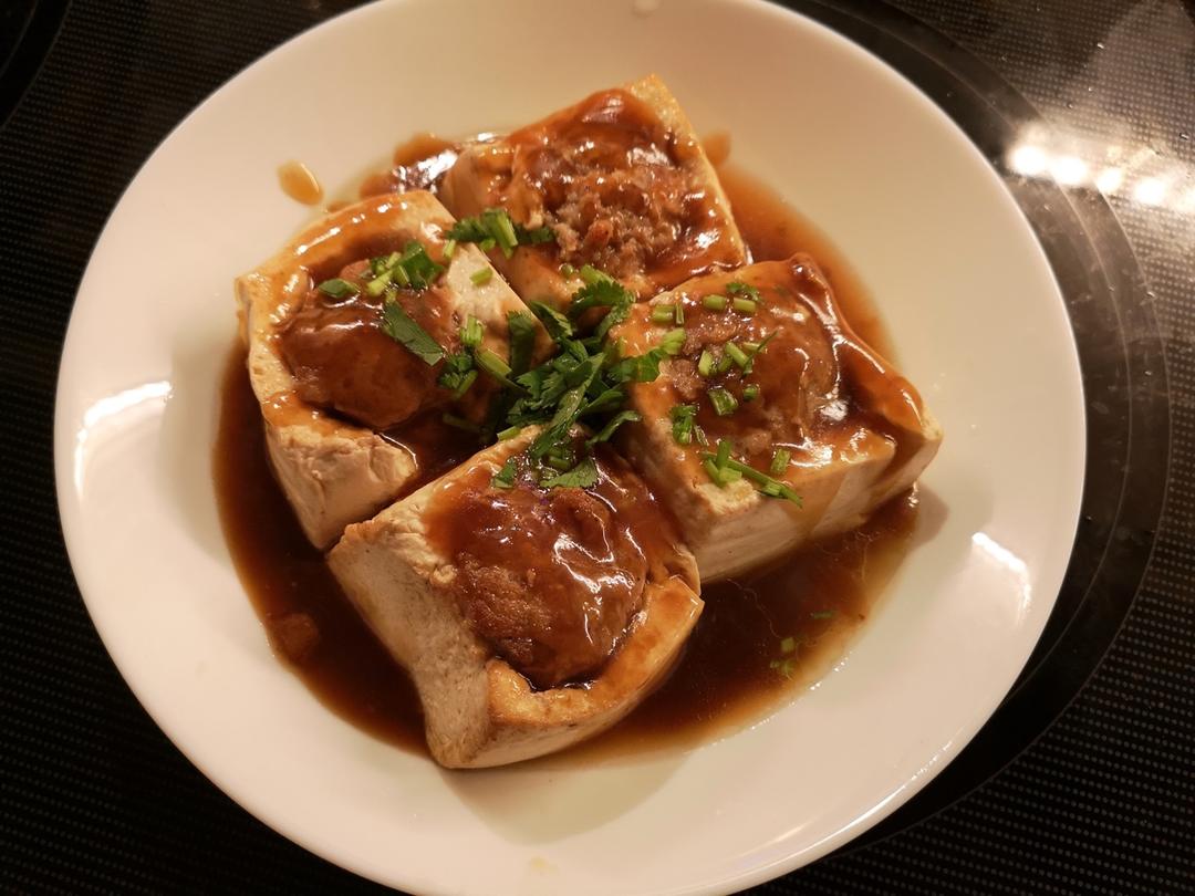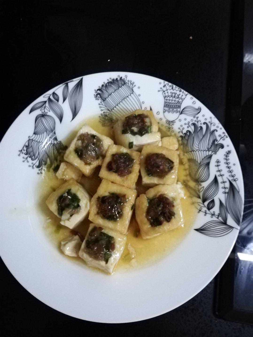 第二次做酿豆腐,比上次做得更好,就是水煮得太干了。😂