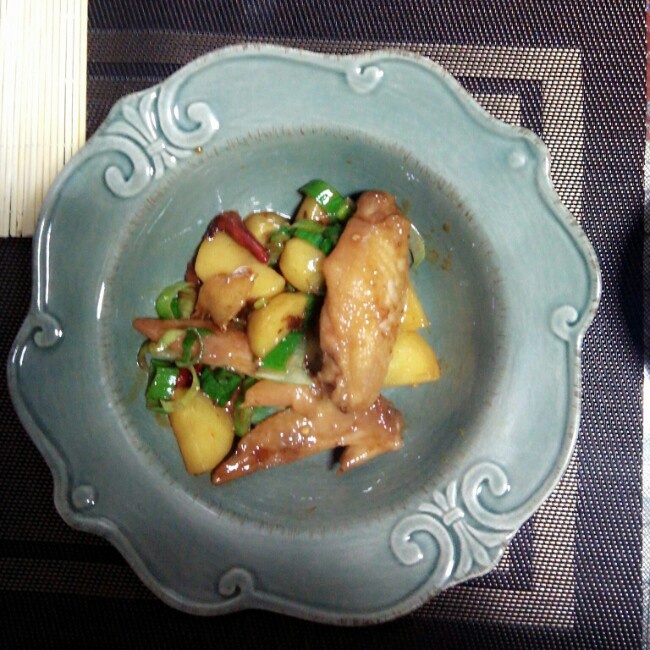 用剩下的翅尖炖了一个土豆,儿子的晚餐,2个手抓饼,一个鸡翅。