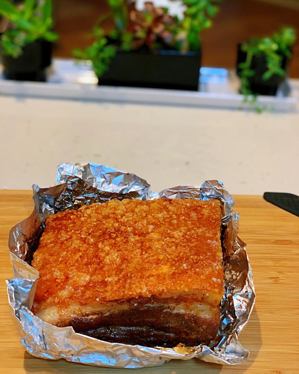 先买了一小条五花肉尝试了一下,以前以为很难的很复杂的脆皮烧肉,其实这么简单。好吃😋。