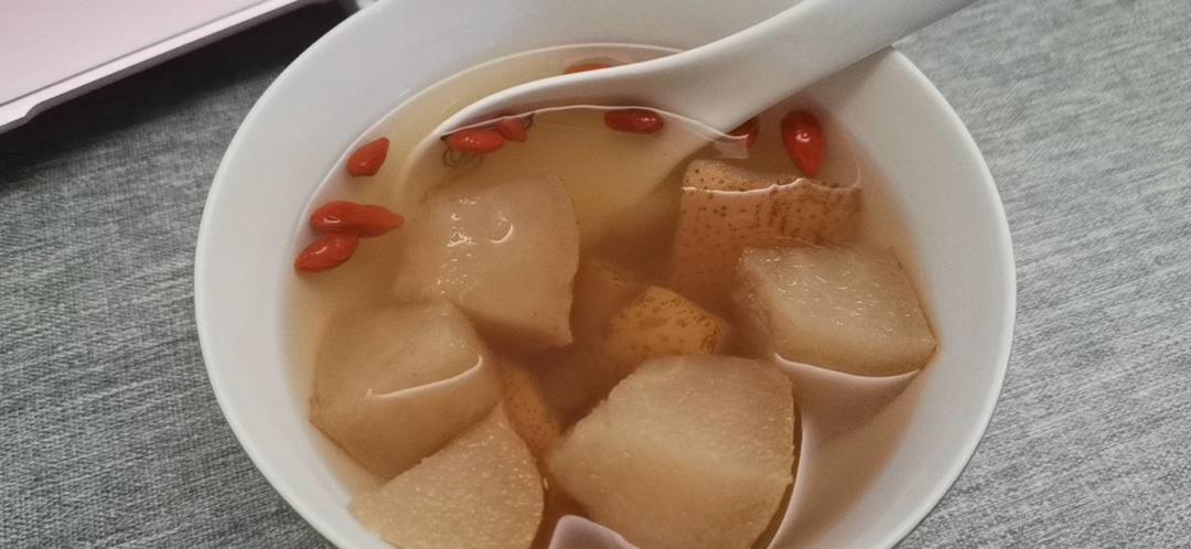 冰糖雪梨水#冰糖去芯,切成小块,加入适量清水和冰糖,放入电饭煲蒸煮一小时,随后放入枸杞子,润肺补水的糖水就做好啦...