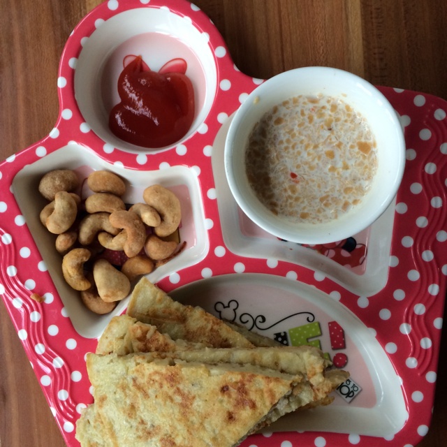 香蕉鸡蛋饼,红枣燕麦牛奶,腰果