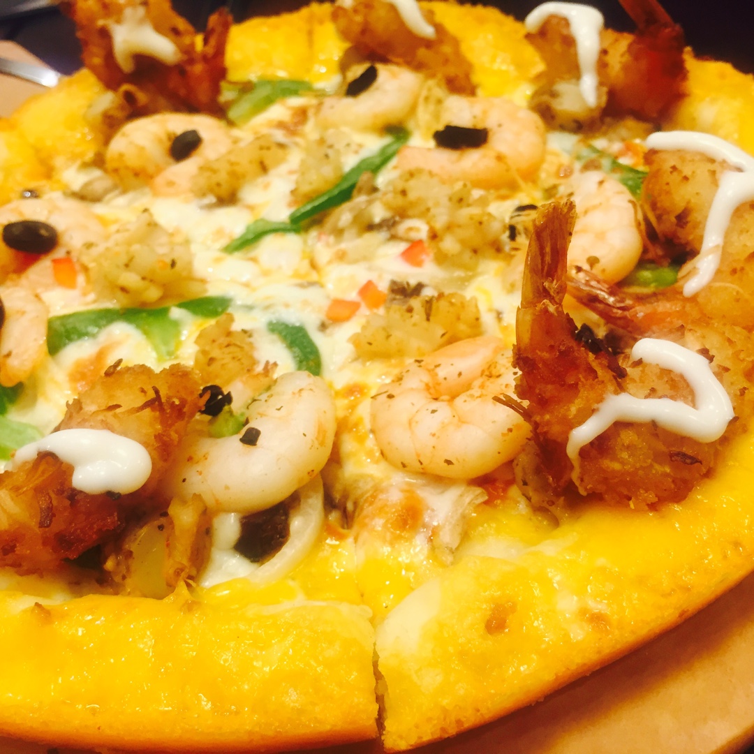 最好吃的海鲜披萨:海鲜料足,皮薄脆,内有红薯夹心 披萨还是推荐@