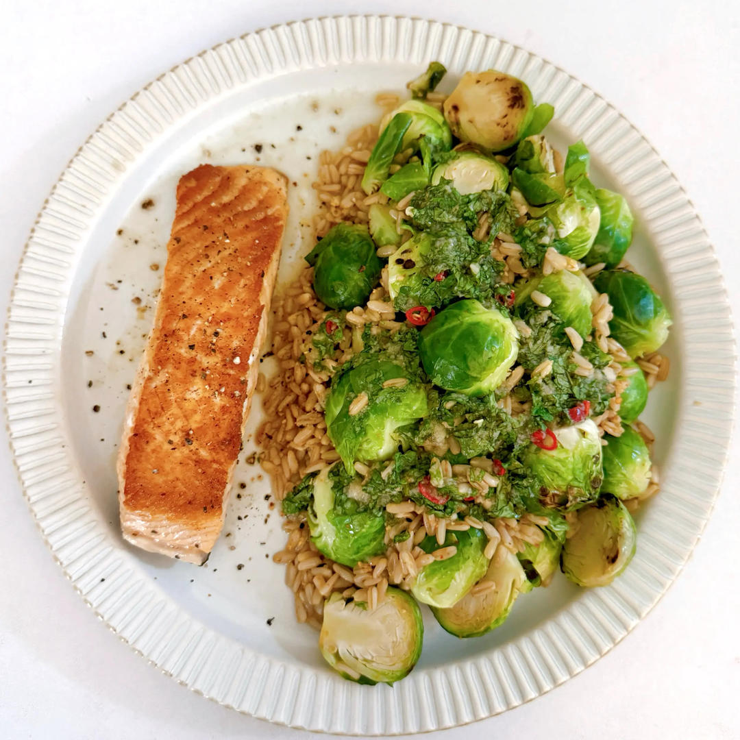 三文鱼配鱼露孢子甘蓝燕麦沙拉和水果彩椒