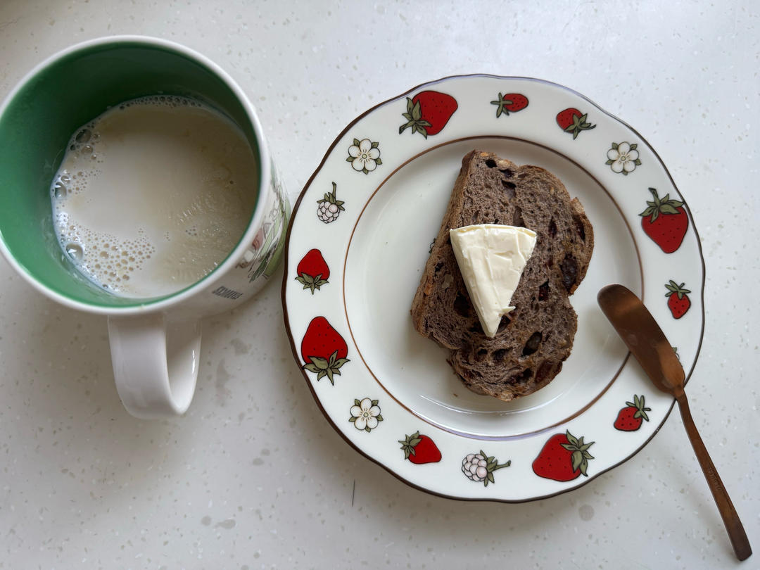无糖豆浆,杂粮面包,奶酪