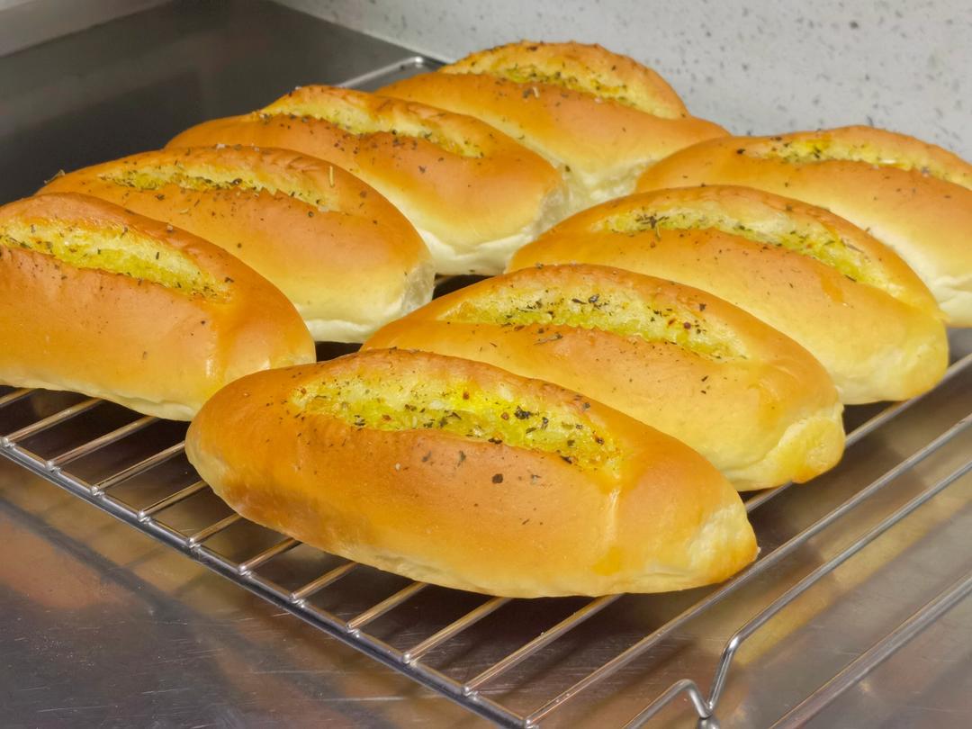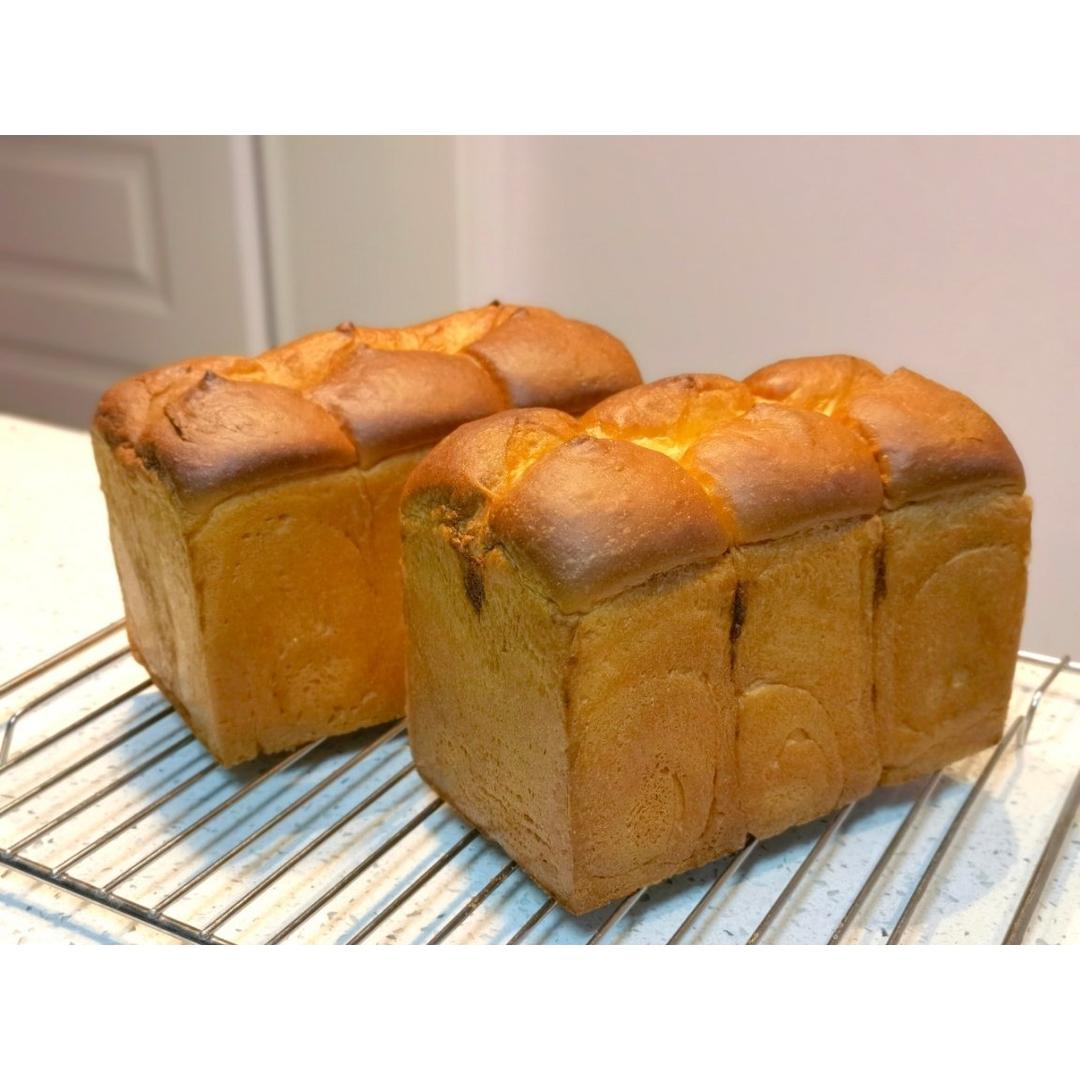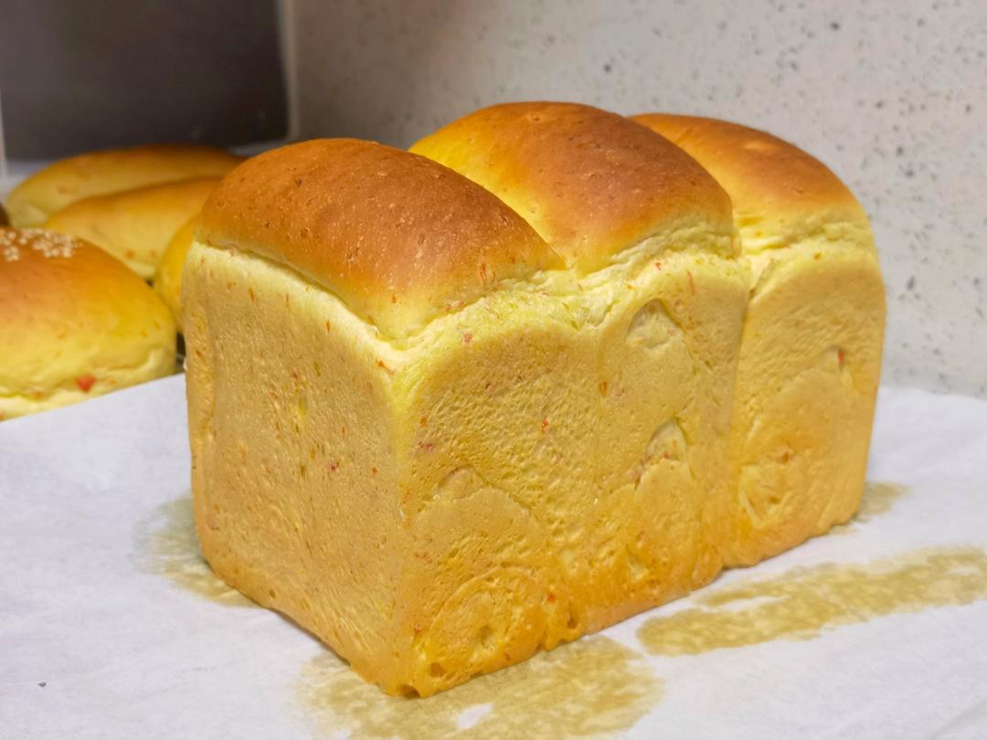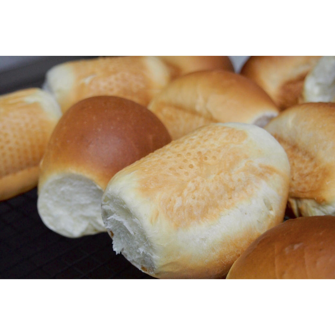用两个吐司的量做了一个吐司两个汉堡包+三个餐包+两个mini小餐包(吃掉了)
