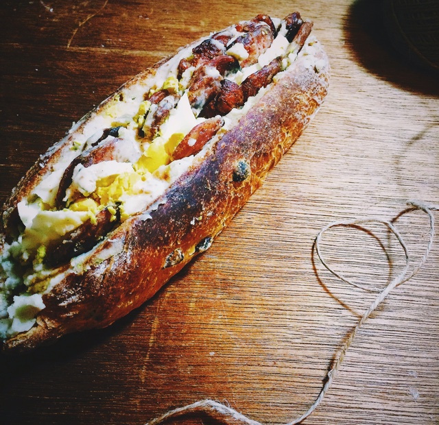 明日滑雪午餐-土豆泥香肠鸡蛋法棍三明治