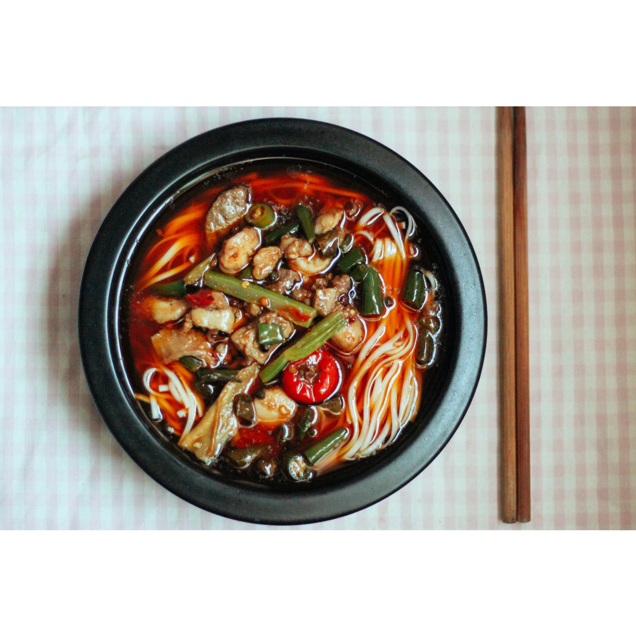 打包回家的三活兔做臊子,淋一点点炒兔子的油,吃起来都辣辣的,早晨还是不适合这么重口味的东西啦。。。
