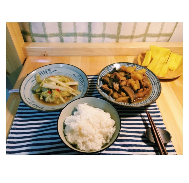晚餐排骨饭。不错呀。