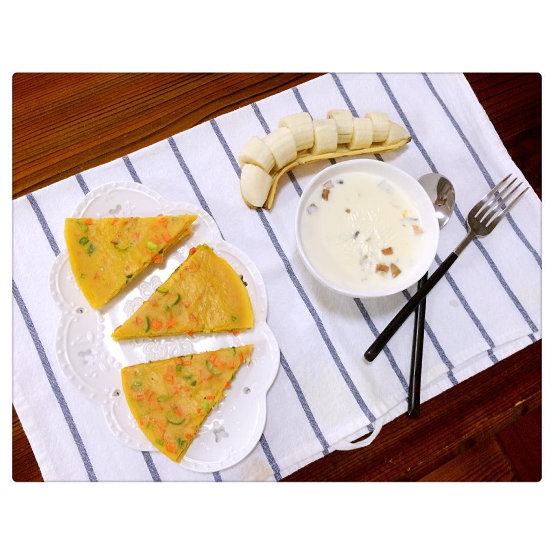 ^_^ 2016.10.12 牛奶麦片粥+金枪鱼蛋饼+香蕉。
