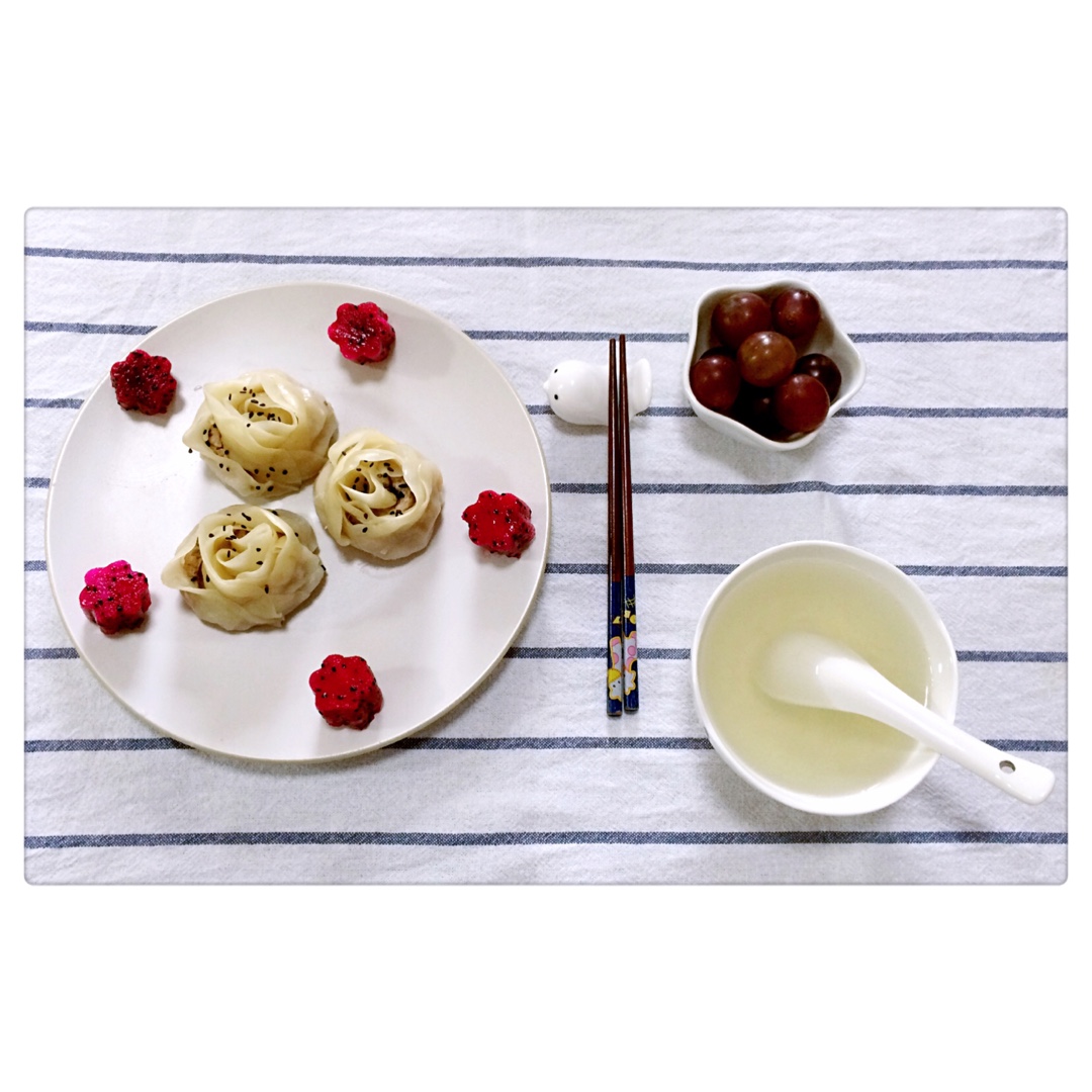 ^_^ 2016.9.13 冰糖燕窝+生煎玫瑰花饺子+葡萄+红心火龙果。生活是一种态度,你每天怀揣着...