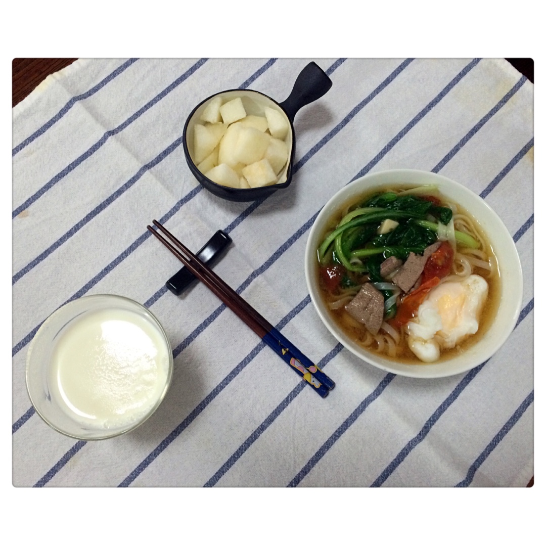 ^_^ 2016.9.7 牛奶+西红柿猪肝面+雪梨。