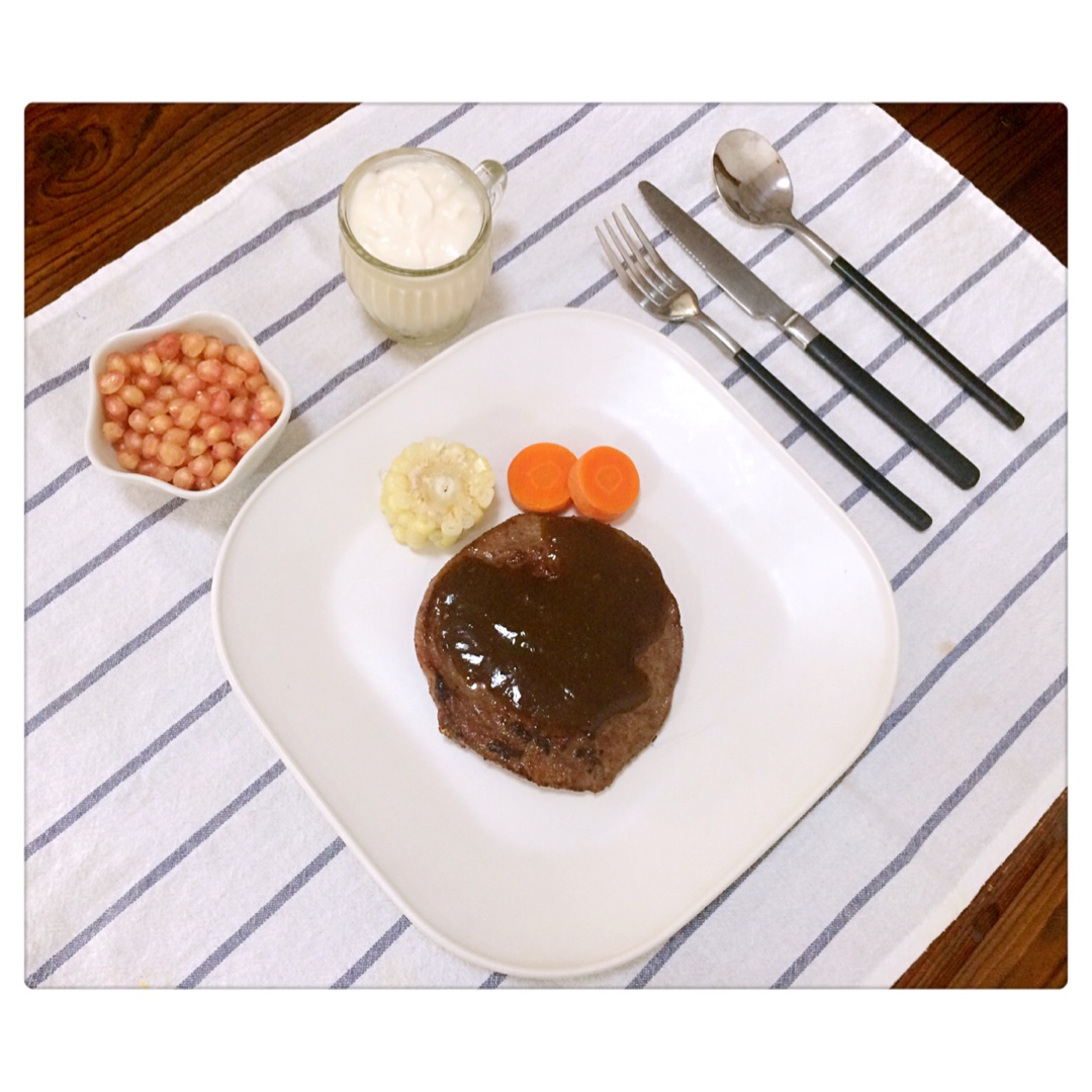 ^_^ 2016.9.23 牛奶+煎牛扒+鲜蔬+神奇煎蛋+石榴。糊涂的溪妈忘了把颜值极高的神奇煎蛋摆...