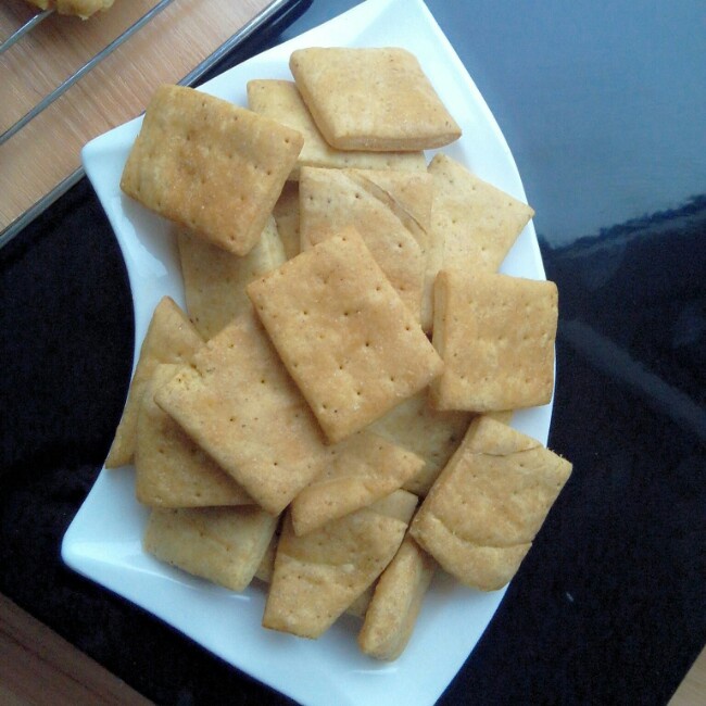 全麦小苏打饼干,也是昨天晚上烤的,因为他要组装鞋柜和办公桌,所以我就边烤东西边陪他,一...