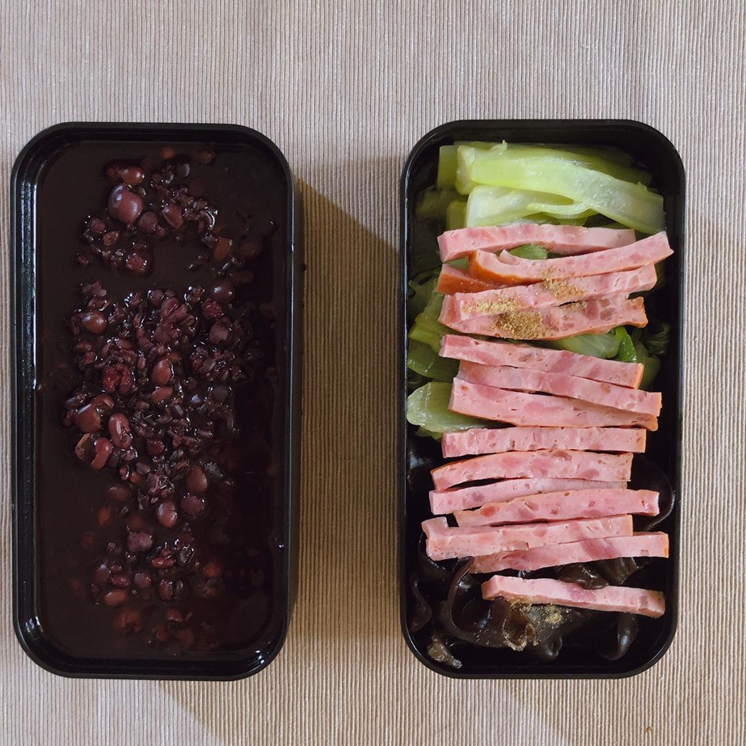 黑米红豆薏仁粥➕油煮青菜木耳火腿 下厨房现在上传作品好麻烦呀 难道都要大家上传为故事吗…#工...