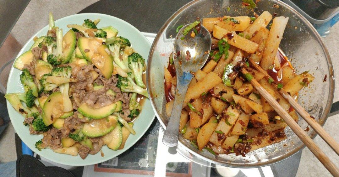 西兰花🥦 时蔬、青椒牛🐮肉丝、益藜🌾 米饭