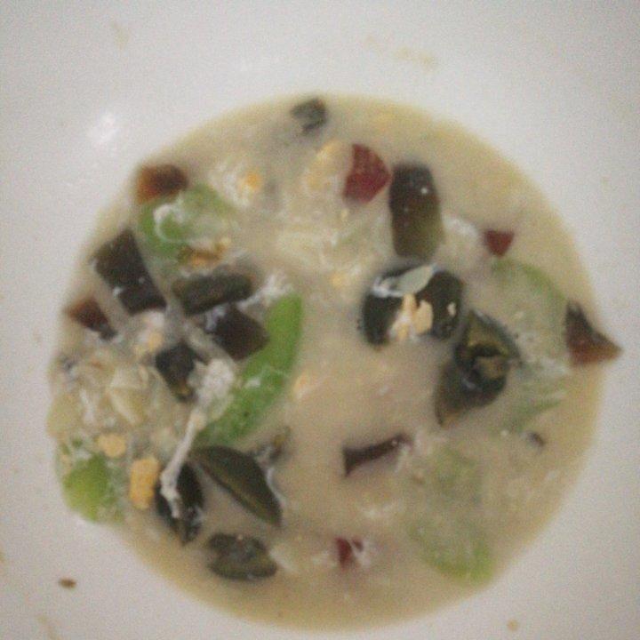 放了娃娃菜,一点胡萝卜。咸鸭蛋用了整个蛋没有再加盐。